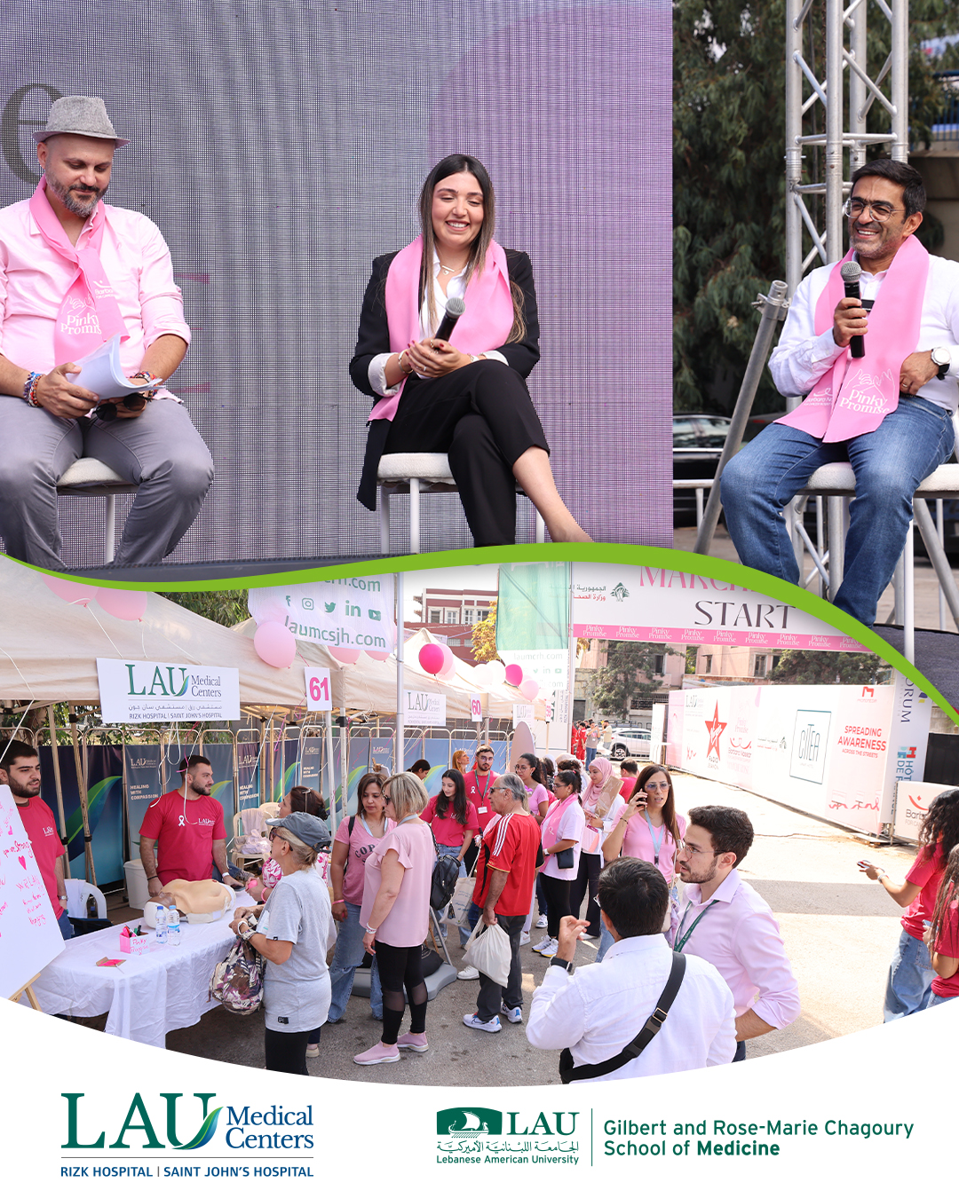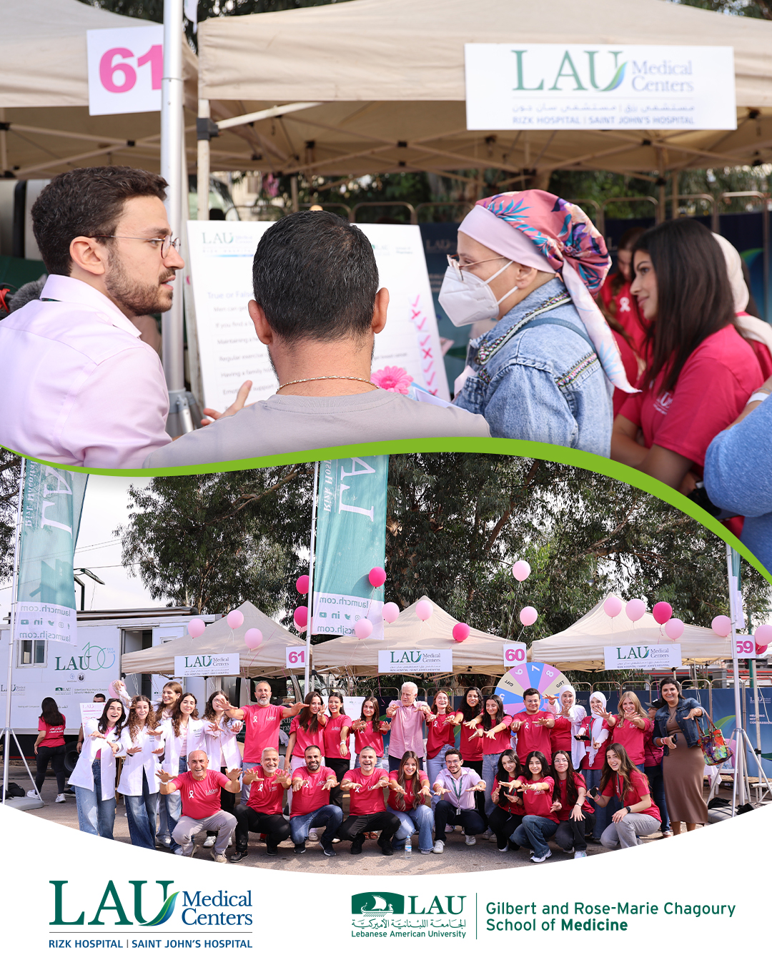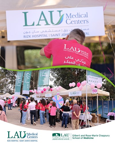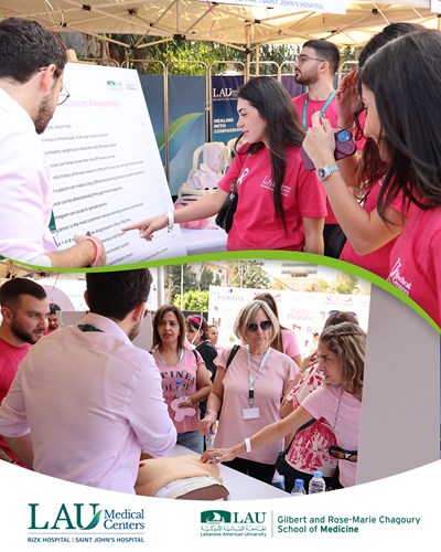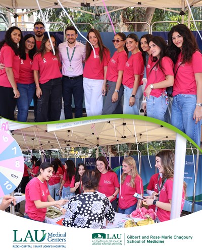 Wrapped in pink courage and community spirit 💗 Our LAU Mobile Clinic, together with teams from LAU Medical Centers, the LAU School of Pharmacy, and the Nutrition Department of the School of Arts and Sciences, joined the Barbara Nassar Pinky Promise Event to promote breast cancer awareness. Through medical check-ups, nutrition guidance, interactive games, and heartfelt engagement, we stood united in support of Breast Cancer Awareness Month — empowering health, hope, and early detection.
